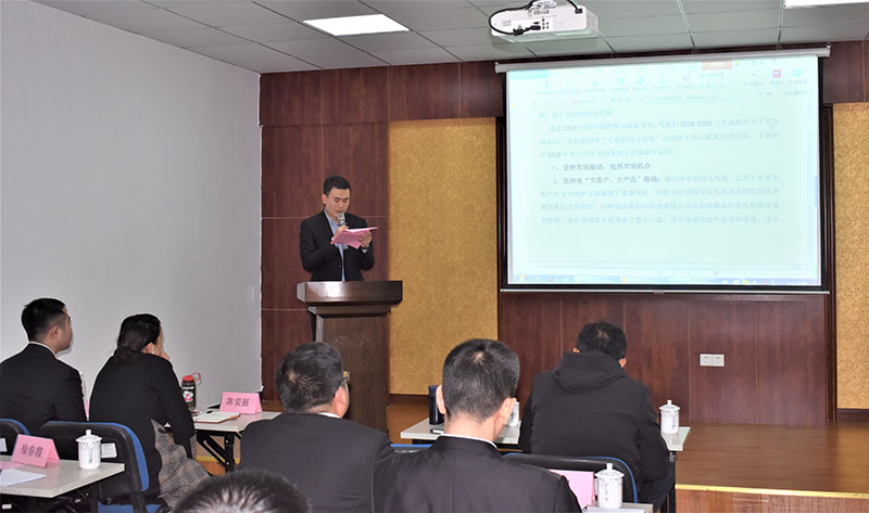 隨后,江蘇正業(yè)總經(jīng)理劉海濤匯報了2018年工作總結(jié)和2019年工作規(guī)劃。2018年,江蘇正業(yè)在集團(tuán)公司整體規(guī)劃下,嚴(yán)格落實(shí)年度工作指標(biāo),以市場驅(qū)動為主線,不斷強(qiáng)化內(nèi)部管理,整體任務(wù)指標(biāo)基本達(dá)成集團(tuán)要求,代表公司感謝集團(tuán)副總裁徐地明對江蘇正業(yè)的大力支持,也感謝全體員工的努力付出。2019 年,相信在集團(tuán)副總裁徐地明帶領(lǐng)的光電 SBU 的大力支持下,在江蘇正業(yè)全體同仁的共同努力下,我們必將達(dá)成年度指標(biāo),為集團(tuán)發(fā)展貢獻(xiàn)我們的力量。