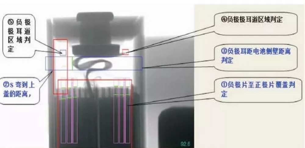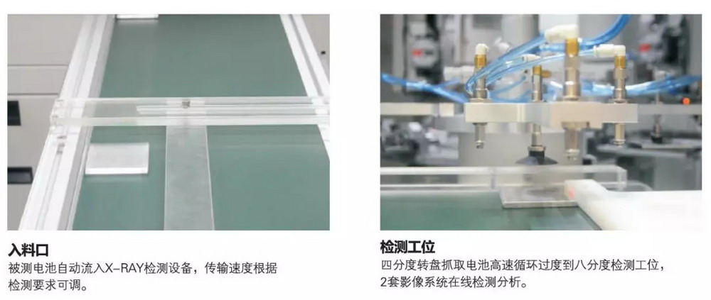其中,全自動X光檢查機(jī)(XG5310)可對鋁殼電池頭部極耳內(nèi)部結(jié)構(gòu)和正負(fù)極片對齊度以及電池平面正負(fù)極片對齊度進(jìn)行全自動檢測。