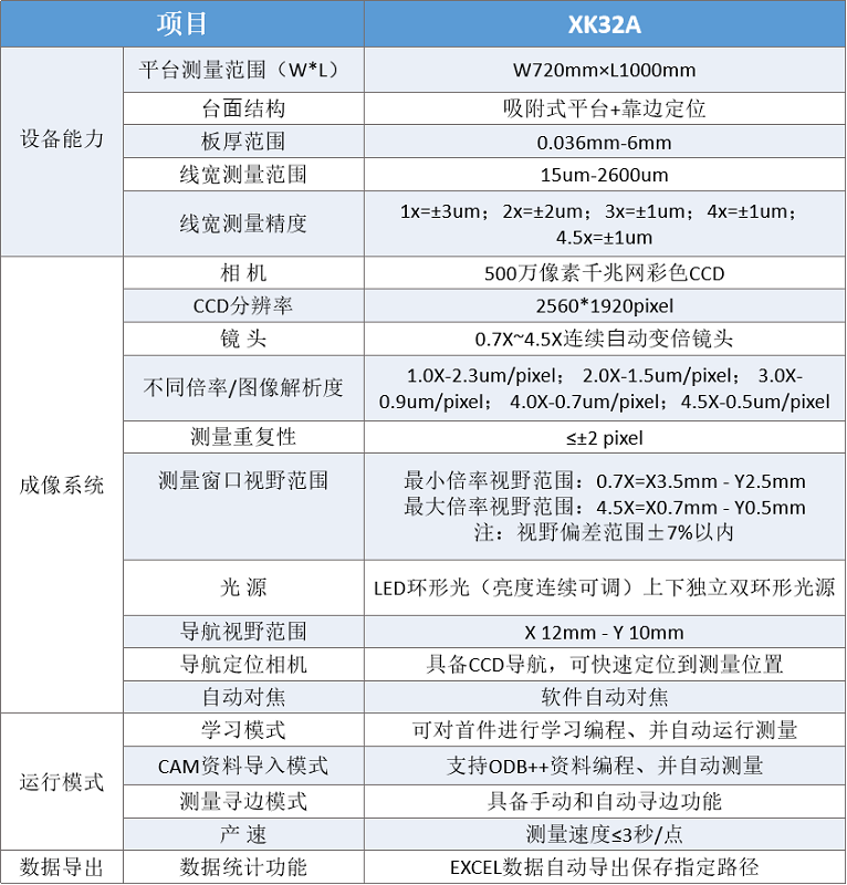 正業(yè)科技全新自動(dòng)線寬測(cè)量?jī)x(XK32A)主要應(yīng)用于5G高端線路板及普通線路板的內(nèi)、外層半成品經(jīng)顯影蝕刻后(上綠油前)線路的上幅及下幅寬度、線距,圓孔(相機(jī)視野范圍內(nèi))檢查和分析。