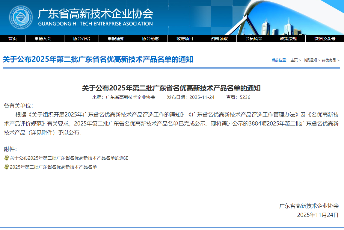 “廣東省名優(yōu)高新技術(shù)產(chǎn)品”是廣東省科學(xué)技術(shù)廳、廣東省高新技術(shù)企業(yè)協(xié)會為促進(jìn)科技創(chuàng)新與技術(shù)攻關(guān),推動關(guān)鍵核心技術(shù)創(chuàng)新能力提升,引導(dǎo)企業(yè)以高質(zhì)量科技供給助推高質(zhì)量發(fā)展而設(shè)立的省級產(chǎn)品榮譽(yù)。評選著重考察產(chǎn)品的技術(shù)領(lǐng)先性與市場競爭力,獲評產(chǎn)品通常具備國內(nèi)首創(chuàng)、可替代進(jìn)口、達(dá)到國內(nèi)國際先進(jìn)水平等特點,是企業(yè)核心實力的重要體現(xiàn)。